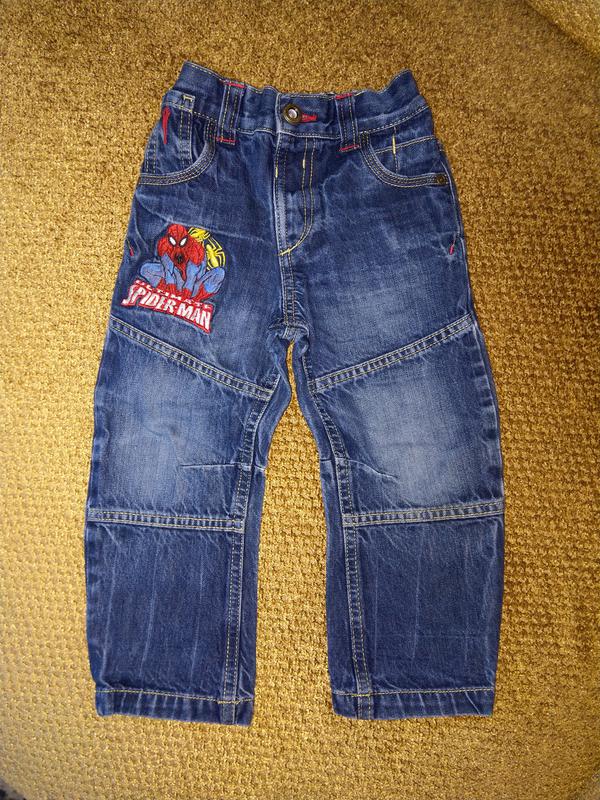 Супер класні фірмові джинси George, Spiderman. По бірці 1,5-2 роки (носили довше). Довжина 51, кроковий 34, пояс 23-30 (ззаду резинка), стегна 32. Стан ідеальний.