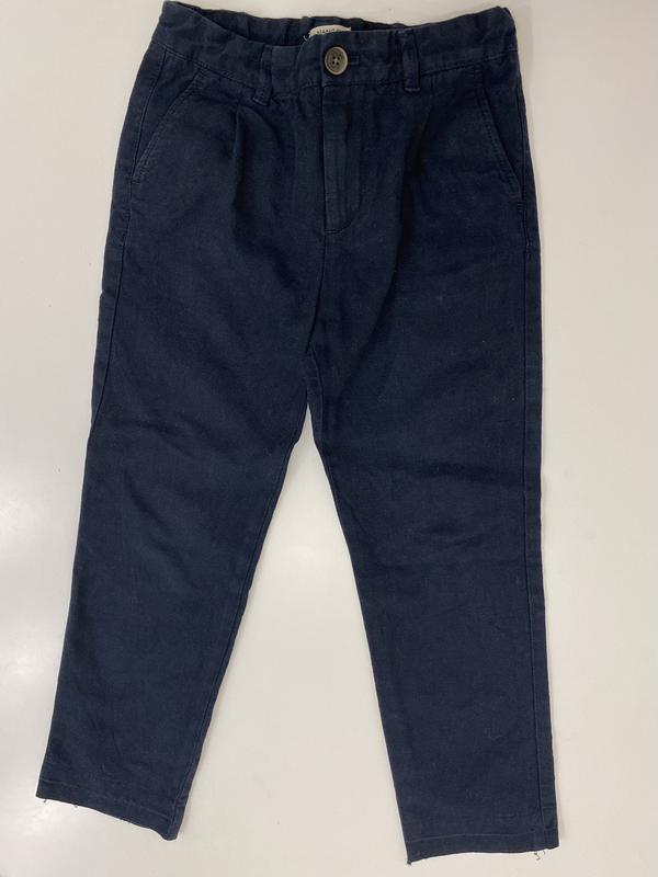 Стильні брюки Mango з якісної тканини перехожої на льон . З дорогою колекції. Можна школяреві чи на свято . Швидко син з них виріс, бо внизу максимально можливо разогнули на 3-4 сантиметри. Враховуйте у вимірах. Можна на 128 розігнуті або на 118-122 підігніть. Пояс регулюється гумкою. Стан дуже хороший.