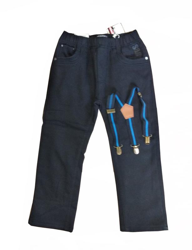 98 см : объем талии 27 см, наружный шов 59 см, шаговый шов 38 см 104 см: объем талии 28 см, наружный шов 64 см, шаговый шов 42 см 110 см: объем талии 28 см, наружный шов 67 см, шаговый шов 44 см 116 см: объем талии 29 см, наружный шов 70 см, шаговый шов 48 см Детские черные теплые котоновые штаны для мальчика на подтяжках утепленные. Брюки свободного кроя из плотного качественного котона, утеплены флисовым начесом. Пояс на резинке, имитация молнии для удобства и комфорта ребенка. Подтяжки идут в комплекте. Спереди и сзади по 2 кармана.