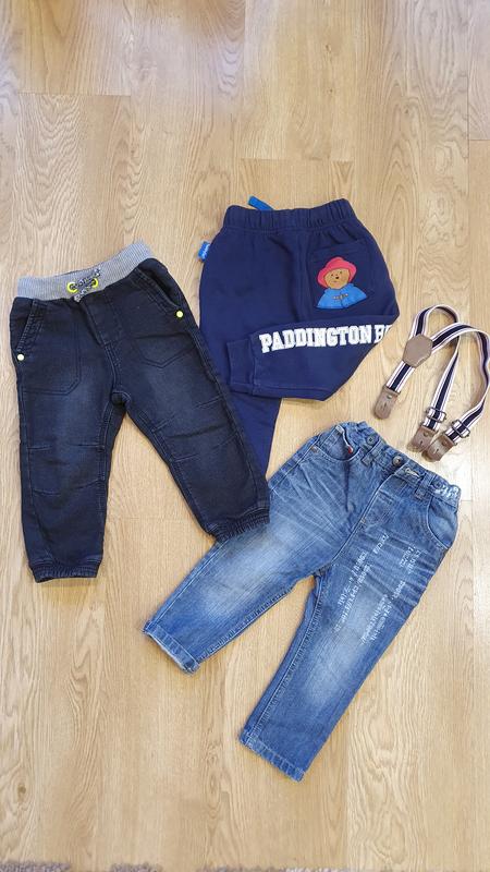 Чорні щільні джинси - розмір 92, сині спортивні всередині на флісі - р. 92-98. Сині джинси next розмір 92, до них йдуть підтяжки ще.