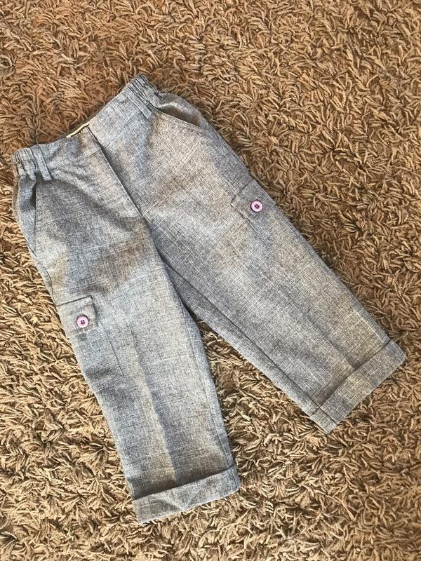 Брючки в ідеальному стані. Розмір 2 Виміри: ПІТ 23,5 см Довжина по зовнішньому краю штанини 53 см Довжина по внутрішньому краю штанини 36 см