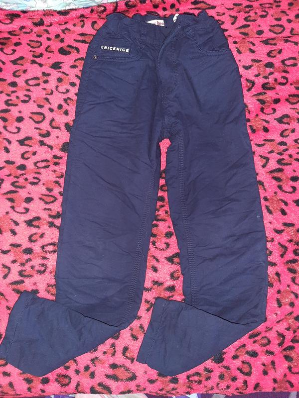 Теплі на байці брюки котонові, розмір 140. Стягується резиночка. В ідеалі одіти пару раз.