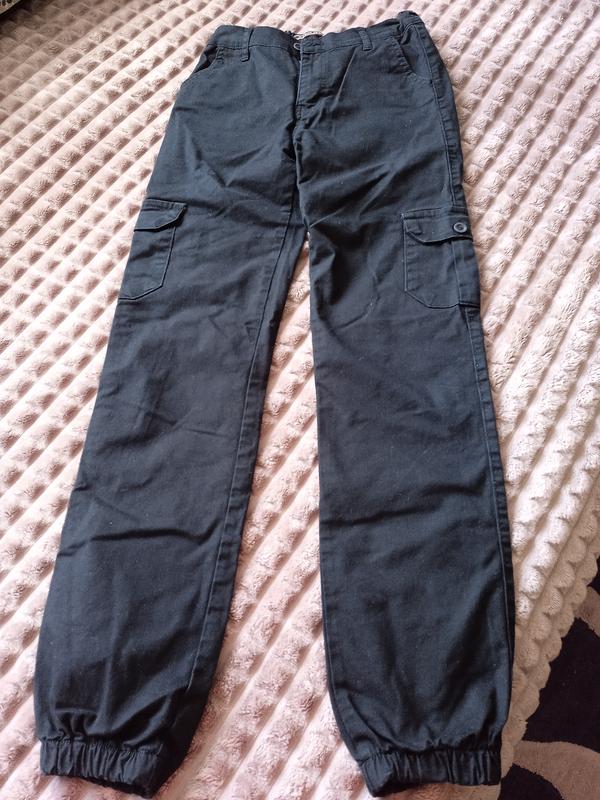 Коттоновые брюки карго на подростка ( смотрите по замерам). Состояние новых, облачили несколько раз, выросли. Ногде не потертые, замочек рабочий. В поясе утяжка. Идеально на худи мальчика