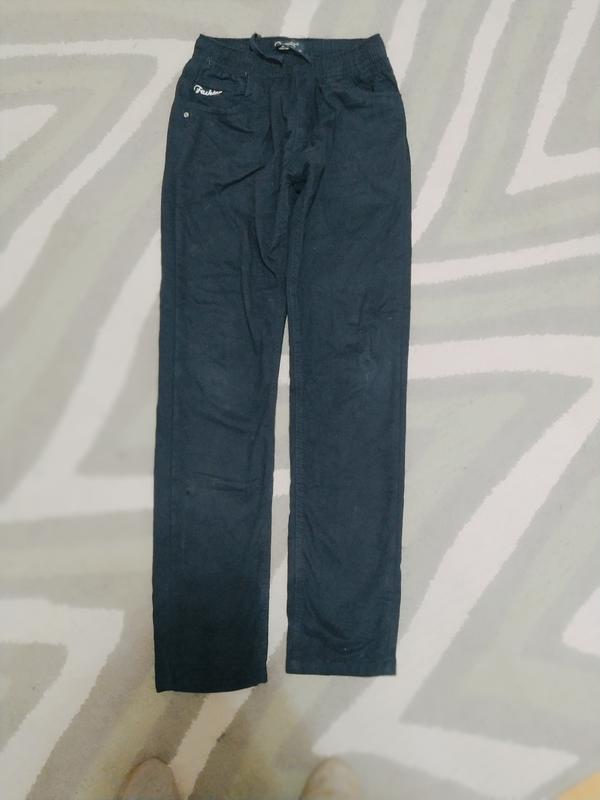 Штани для хлопчика темно-синього кольору,утеплені,на резиденції, розмір 158 см. Довжина по зовнішньому шву 98 см.