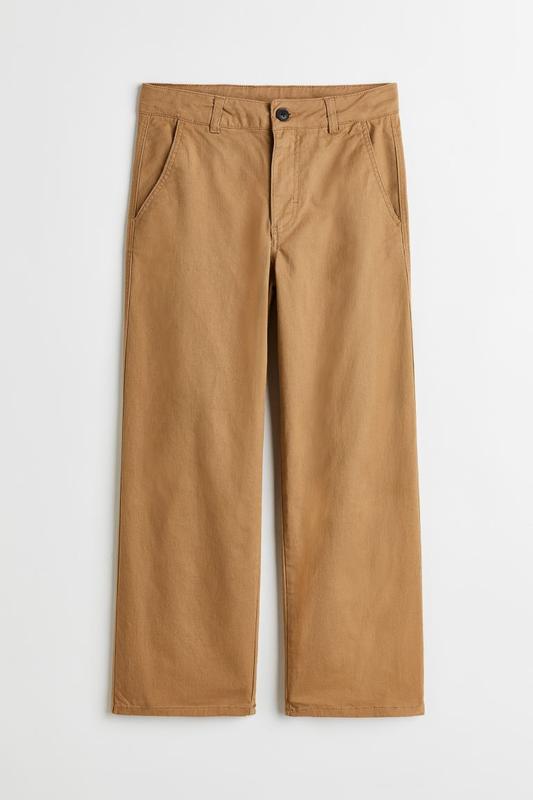 Модель baggy chinos, це вільний крій з бічними кишенями. Однаково стильно виглядають як на хлопцеві, так і на дівчині. Щільна тканина, майже не тягнеться, 98% бавовна. Розмір 8-9 років/134 см, заміри: Довжина 79 см Кроковий 56 см Талія 31 см (є гудзики регулювання) Стегна 42 см