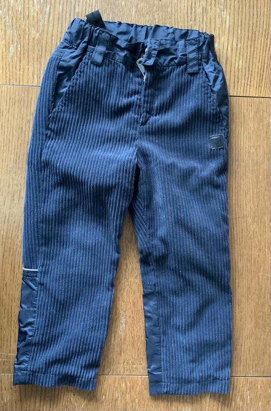 Матеріал: верх 100% поліестер, підкладка 35% бавовна, 65% поліестер. Молнія, ґудзик + регулюєтсятся резинкою на талії. 4 кармани. Довжина 56, кроковий шов 36 см. Колір синій. Стан відмінний, без дефектів.