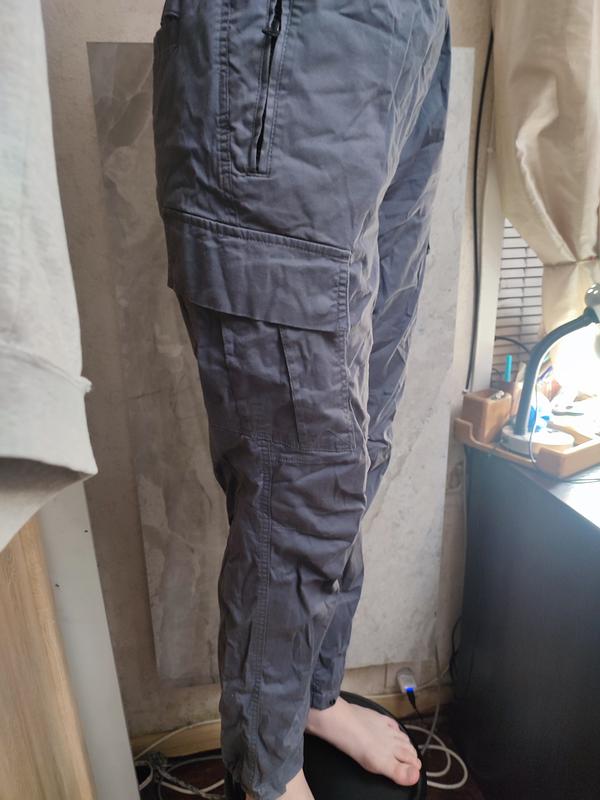 на резинці штанини.великі кишен по боках та прорізні на бедрах.поясрезинці.є місце для шнурка паска. тканина котон.стан ідеальний.на зріст 164см_170.