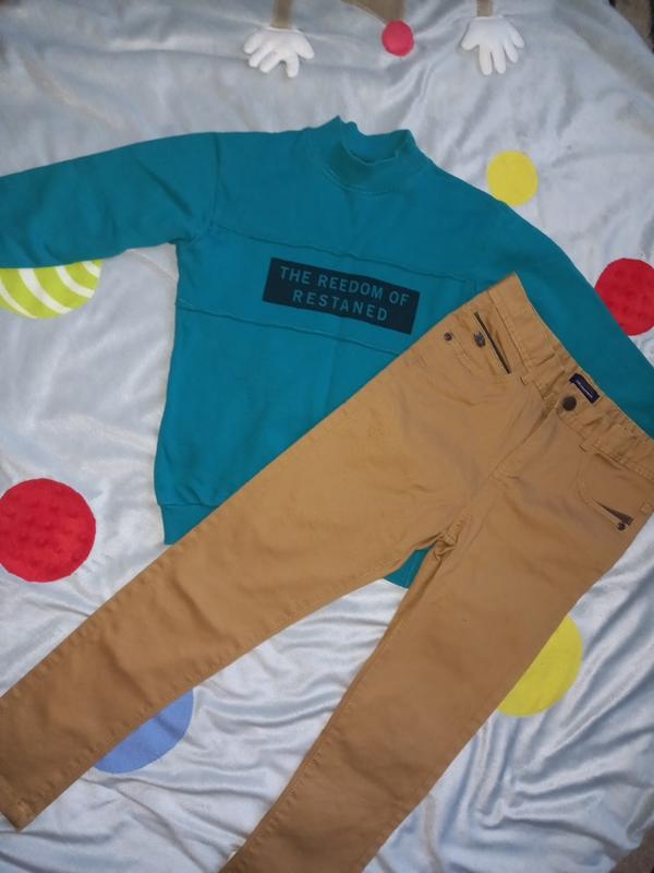Брюки та кофта на хлопчика. Німечинна. Заміри ⤵️ Кофта: Довжина - 45 см Рукав - 42 см Плечі - 32 см Брюки: Довжина - 76 см Посадка - 26 см Бедра - 71 см