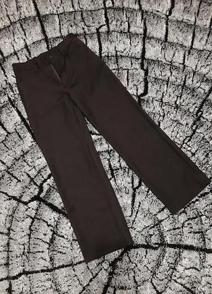 Класичні штани в полоску. Талія регулюється за допомогою вставної резинки. Дві передні кишені, одна задня.