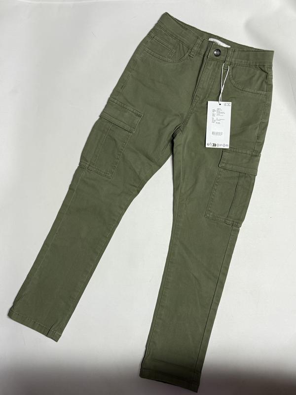 На зріст 128 см. Довжина 79 см, кроковий шов 59 см, пояс 28 см, є утяжка, бедра 36-37 см. 98% бавовна, 2% еластан. Виробництво Камбоджа. Висока якість, сучасна модель.