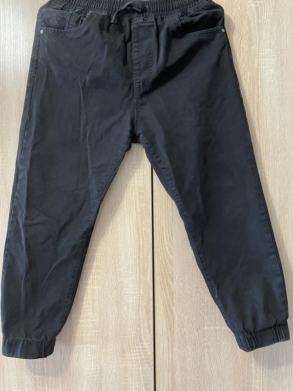 Довжина з манжетом 78, шаг 52,, пояс 34, ширина в попі 50. Трішки по манжетам та резинці у поясі полиняли, але колір чорний як на 1 фото