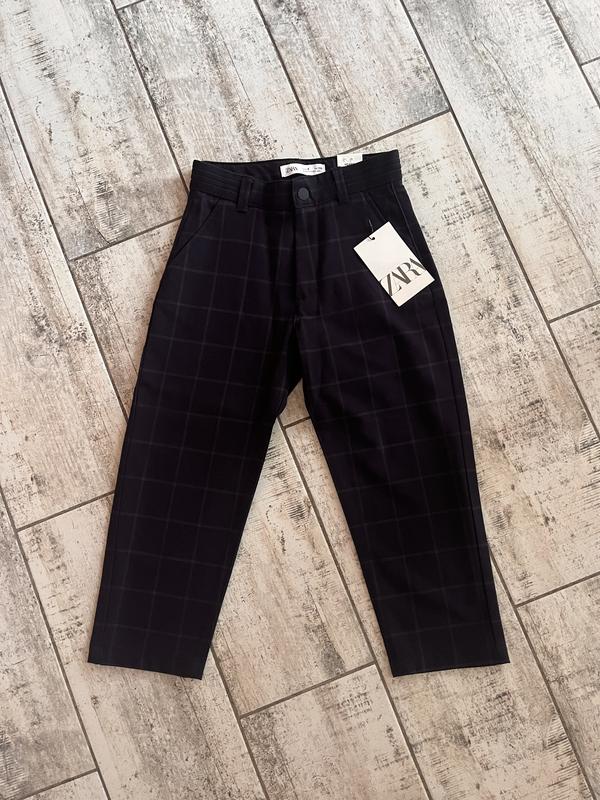 Брюки Zara розмір 6 116 Стильні, зручні, темно сині у клітинку Святковий та шкільний варіант Довжина 64,5 Пояс 26 регулюється