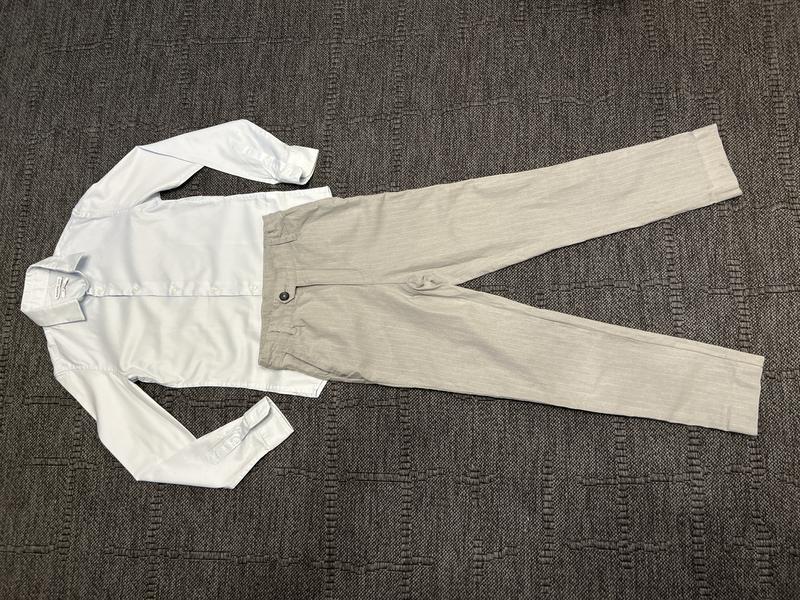 Продам набір-сорочка з брюками. Можливо і окремо! Брюки фірми Reserved в ідеальному стані! В поясі можливо регулювати, є гудзички, щоб робити в поясі вужче чи ширше. Якість бомба! Розміри: в поясі 31-34 Довжина від пояса до низу 86-87 см Бедра 36-37 см. Тканина чудово тягнеться! Сорочка теж фірми Reserved! В ідеальному стані! Розмір 146 см. Довжина 59-60 см В грудях 37 см Рукав від плеча до низу 53,5 см Є ще додаткова сорочка меншого розміру якщо потрібно. Ціна комплекту 520 грн