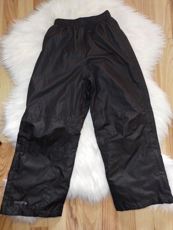Штани з плащовки на дощову погоду. Підкладка сіточка, на поясі резинка. на штанках по боках замки. Довжина 74см. пояс 26см(тягнеться до 35см.)