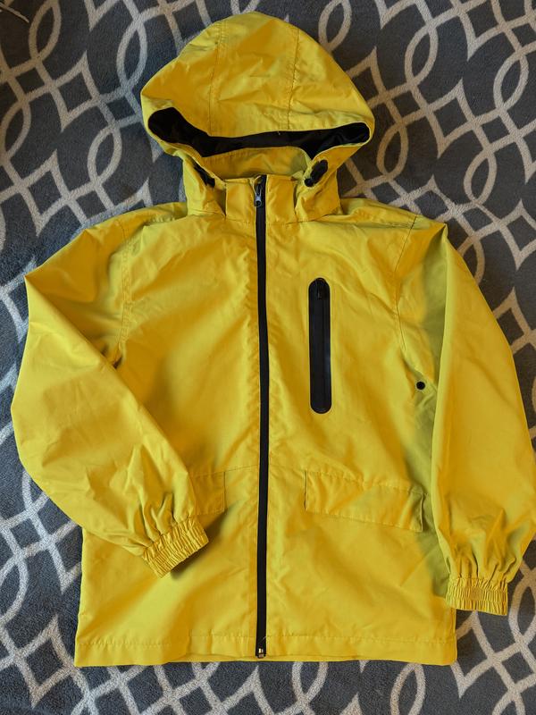 Чудова, яскрава ветрівка жовтого, насичено кольору. Не продуває, не промокає, на дощову погоду це просто ❤️ Не утеплена. Розмір вказано 146/11 років. Але я б краще брала на 9-10 років, орієнтуйтесь по розмірам. Вона стане вашою улюбленою.