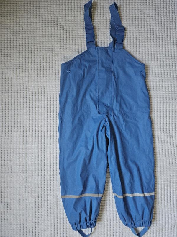 Длина полностью максимальная 95 см,шаговый шов 40 см.Ткань не промокает, утеплен флисом внутри полностью. Слегка разтянутые резинки вверху. Не промокает вообще.
