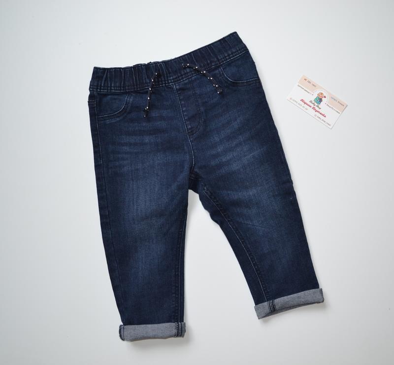 Новые джинсы, только без бирки. купили, но не носили, потому что широкие в поясе, 26,5см. В поясе есть резинка, но она не подтягивается, спереди вставлен шнурок, но для красоты.. Сами джинсы удобные, тянутся.. Размер: 18-24м 92см