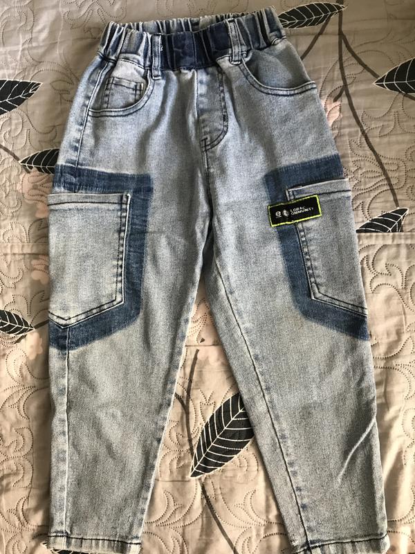 Летние джинсы на мальчика. Имеется дефект- на коленные пятна, почти не заметная