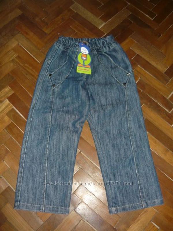 Новый джинсы для мальчика фирмы Одягайко, очень качественные, стильные. Размер указан 26 (92-98) Состав: 100% коттон Замеры: Длина с поясом 59 см Шаговый 40 см Пояс в не растянутом ввиде полуобхват 20 см