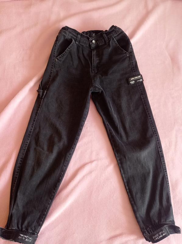 джинси на хлопчика, на зріст 140 см, зручні, м'ягесенькі, можна коригувати резинку, в низу резинка і є ще застібка липучка довжина джинсів 80см довжина внутрішнього шву 56 см