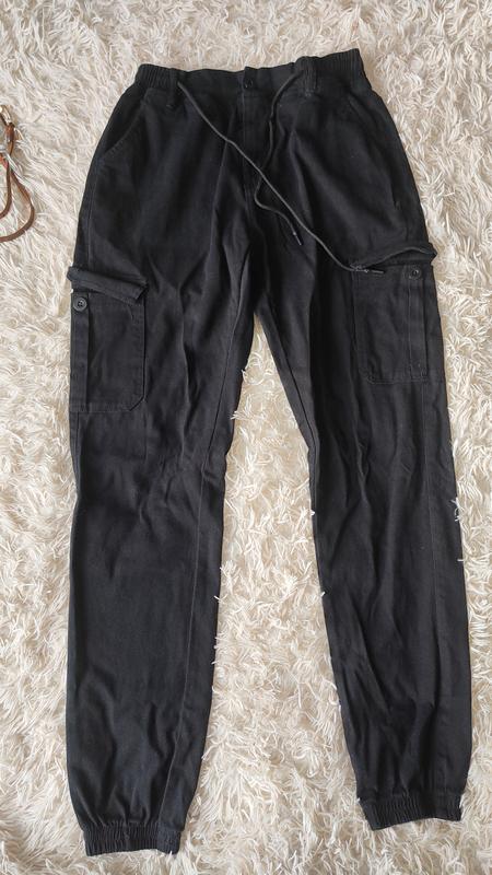 Джинси джогери на резинці чорного кольору з карманами по бокам. Склад котон 95% спандекс 5% По резинці 33 Довжина 101 Довжина кроку 76