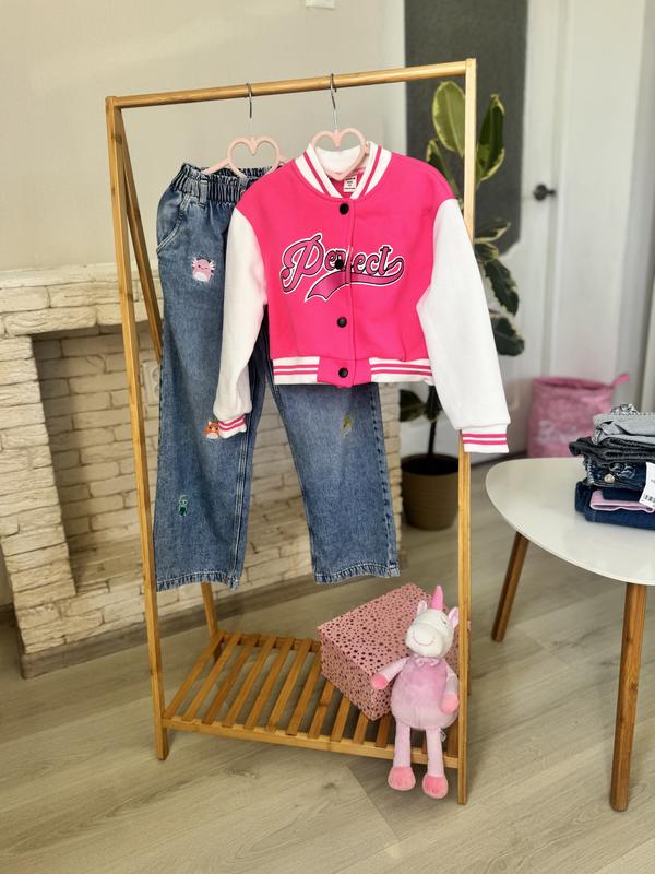 Джинси бренду h&m з вишивкою, палаццо + кофтина на кнопках з флісом ідеальний образ на весну для дівчинки 7 років
