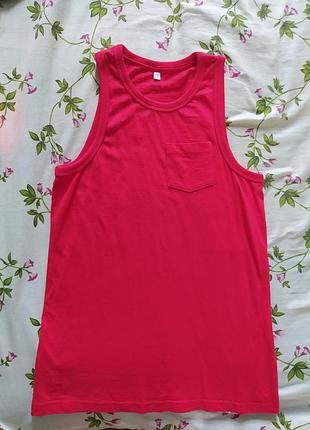 Майка насиченого червоного кольору, не яскрава, з кишенькою . По мені унісекс