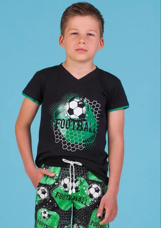 Футболка чорна для хлопчика. Розмір одягу 98 Дитяча футболка чорного кольору для хлопчика. А75149Модель прямого крою з V-подібним вирізом горловини. Оздоблена оригінальним спортивним принтом з написом. Легка та комфортна - ідеальна для спекотної літньої погоди. Завдяки хлопку у складі (97% бавовна, 3% еластан) забезпечується природна терморегуляція тіла дитини, а завдяки незначній кількості еластану виріб кольоро - і формоустойчиво, а значить витримає велику кількість прань. Прекрасно поєднується з будь-якими шортами, джинсами або бриджами. Виміри 98 см Ширина плечей 23 см Обхват грудей 58 см Довжина виробу 36 см Складу матеріалів 97% бавовна, 3% еластан