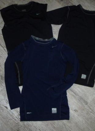 Термобелье Nike pro 1)Nike pro майка Найк про на 12-13 лет длина 53 ширина 33 150 2)Синий Рашгард, реглан Найк Nike pro combat на 8-10 лет (по бирке 10-12, маломерит) длина 51 см, ширина 31,5, рукав 45,5 см +7 см плечо, между плечевыми швами 28 см очень хорошее состояние 180 3)Nike pro футболка на 10-12 лет длина 52 ширина 33 отл сост, из следов носки-есть трещинки на логотипе 160