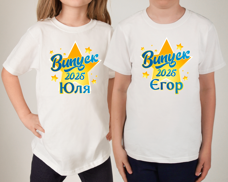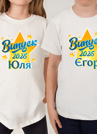 Футболка дитяча на випускний в школу зірковий випуск 2025 з іменем