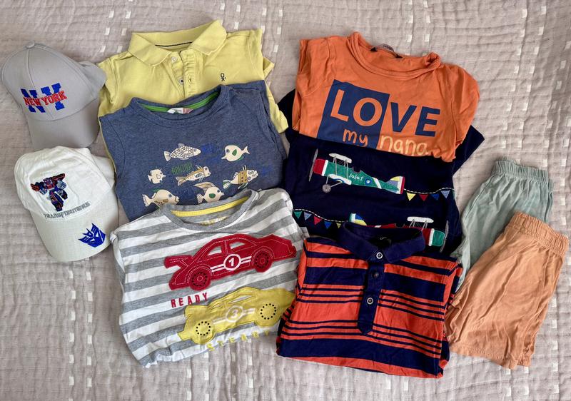 Набір літніх речей для хлопчика. 6 футболок 2 шортів, 2 кепки 50 розмір.
