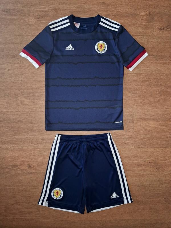 Футбольна форма Adidas команди «Шотландія». Відмінний стан. Країна виробник – Камбоджа. Євророзмір 150-152 см. На хлопчика віком 10-12 років. Заміри форми в оголошенні. Бірки на фото ЗАМІРИ ФУТБОЛЬНОЇ ФОРМИ Довжина футболки по спині – 58 см Ширина футболки під руками – 40 см Довжина шортів з ризинкою – 40 см Ширина шортів в поясі – 28-30 см В шортах є шнурок для стягування