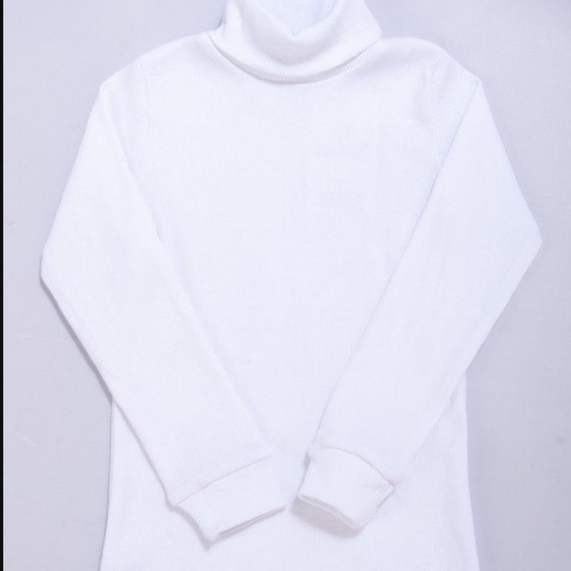 Водолазка з білого, приємного до тіла трикотажу. Кочкорс (рубчик) - це трикотажне полотно, яке має вив'язану фактуру англійської гумки 2x2, 3x3. Застосовується для виготовлення верхнього трикотажу. Тканина еластична, дуже добре тримає форму. Так як це натуральний матеріал, він пропускає повітря і дозволяє шкірі дихати. Підходить для щоденного використання в прохолодну пору року. Полотно: рубчик. Склад: 95% бавовна, 5% еластан. Рекомендації з догляду: прати при температурі не більше 30°C. Допускається машинне прання в режимі "ручне" або "делікатне", біле прати окремо від кольорового. При збільшенні температури прання дасть усадку через наявність бавовни у складі.