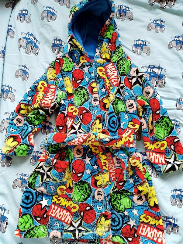 ,Теплий плюшевий халат у стилі Марвел.На вік 4-5 років.Із недоліків має катишки на внутрішній стороні капюшону. Дивіться також інші об'яви є багато дитячих речей.