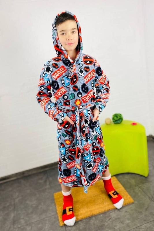 Халат - дуже зручний і універсальний домашній одяг, який відмінно підходить для повсякденного носіння. Полотно виготовлене із високоякісної махри неймовірно м'яке та приємне до тіла. Халат виконаний із затишним капюшоном з двома карманами по переду в комплекті йде пояс. Ціна 675грн Розміри 30(92-100) 32(104-110) 34 (110-116) 92-104 см довжина рукава від шва 43см, довжина 75см 104-110см довжина рукава від шва 44см, довжина 76см 110-116 см довжина рукава від шва 45см, довжина 79см