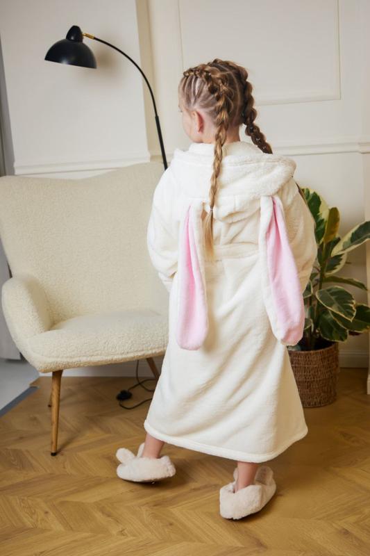 Теплі затишні пухнасті халатики Зайка Затишна новиночка від фабрики Турецька якісна махра щільність 290-300 гр Виробник Україна Розміри ХС С М Л Розмiр XC гарно пiдходть для дiтей та пiдлiткiв 135-155 cм, на фото є як сiдае на 135 та 155 Кольори крем(айворі) капучіно,шоколад,сірий,графіт Є костюмчики піжамки Зайки з вушками
