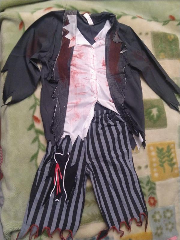 Дуже гарна фірмова орегінальна річь, дуже гарно виглядає, костюм пірата, висота кофти-60см, полу обхват грудей -47см ,длина рукава -43см, длина шортов-46см, полу обхват талії резинки не в розтягнутому виді -26см, в розтягнутому -35см.