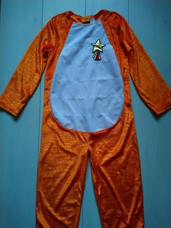 Карнавальний костюм в дуже хорошому стані Матеріал поліестр На вік 7-8 років Довжина 109 см В плечах 32 Під руками 37. Рукав від плеча 45