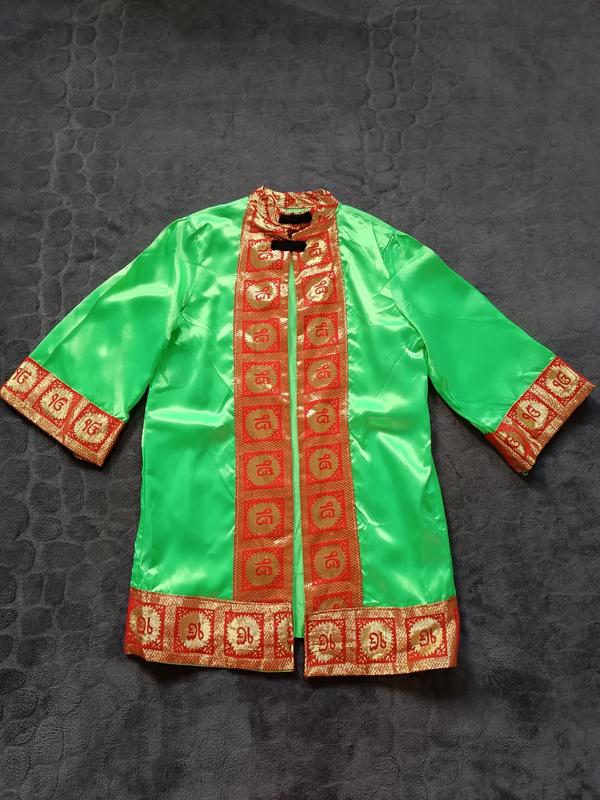 Національний костюм халат Узбекистану, Індії, Таджикистану Стан відмінний, розмір не вказаний, приблизно 8-9 років Тканина атласна, кант цупкий, має підклад Довжина 66 см ПОГ 43 Довжина рукава 40+11 см плече