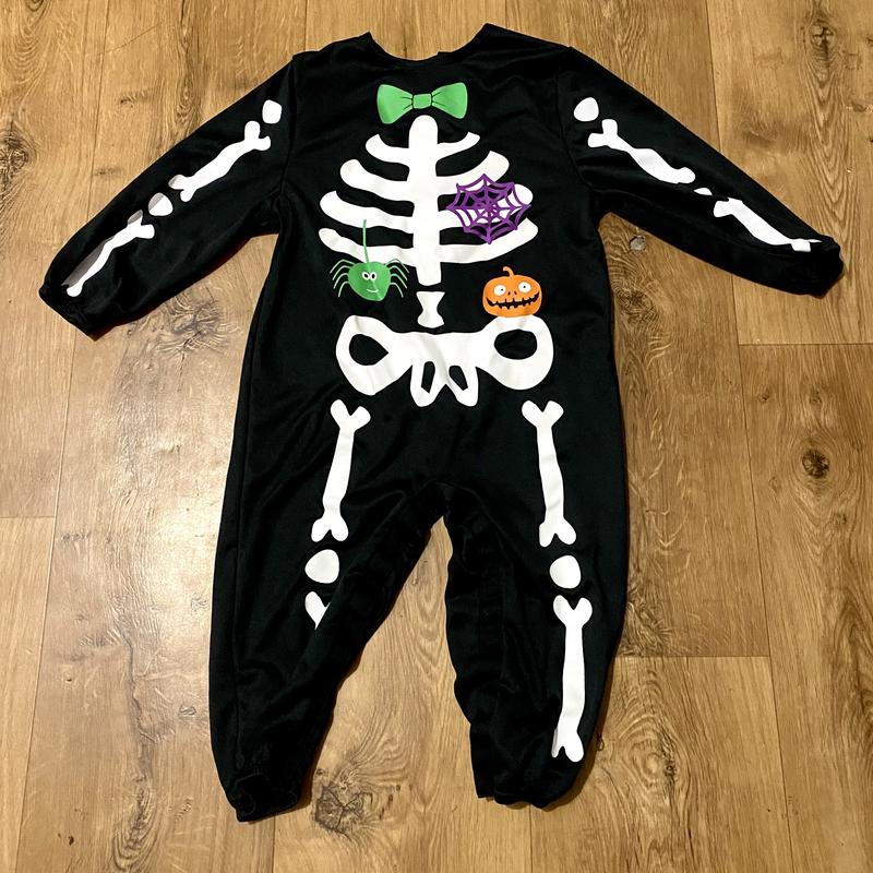 Костюм для маленького духа — світиться в темряві, як справжнє чаклунство! Фірма Amscan, 100% поліестер, тканина тягнеться. Розмір 98 см (на 2–3 роки), довжина 70 см, рукав 32, від паху до низу 27, ширина по талії — 31 см. Застібки на липучках, рукави та штани на резинках. Стан нового — готовий до свята або казкової гри.