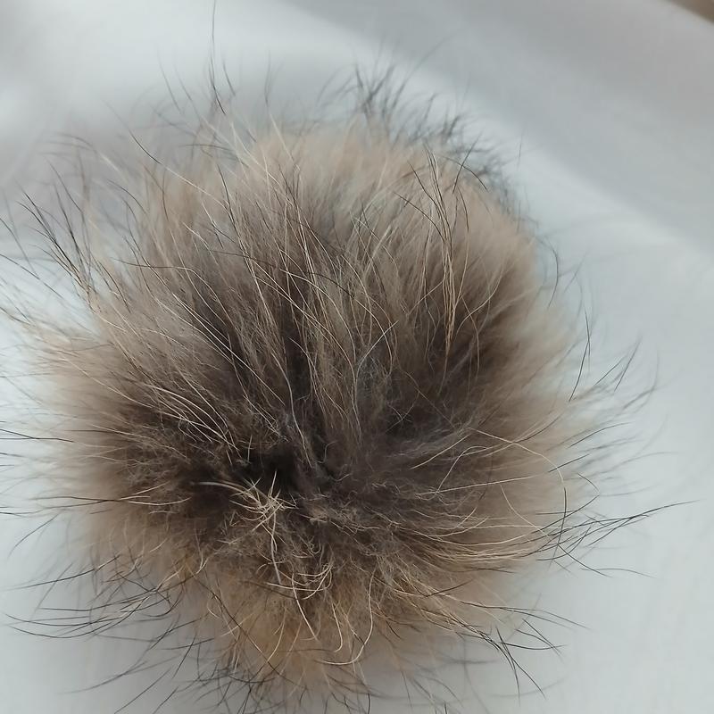 бежево сірий хвіст зайчика, зайчик хвостик , помпон до шапки , натуральне хутро діаметр 12 см