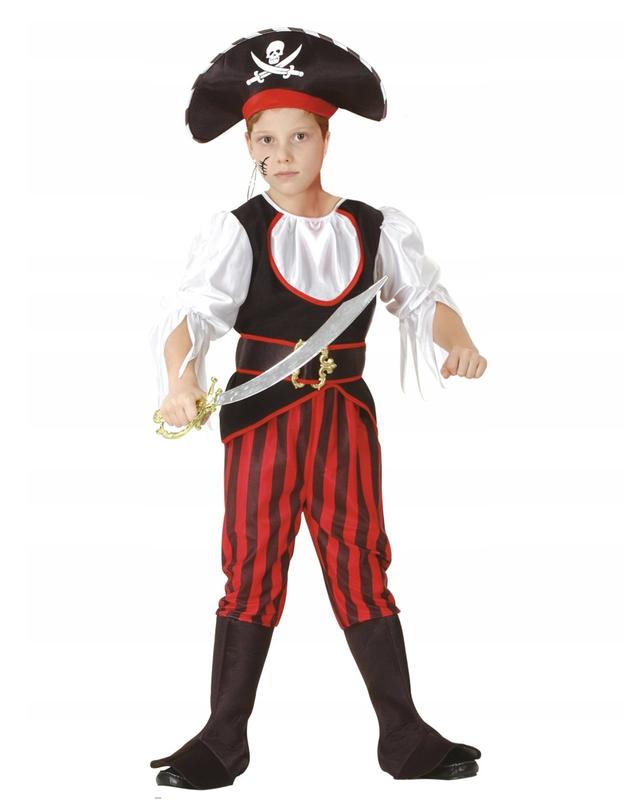 Цей піратський костюм для хлопчиків складається з чорного топа з червоною обробкою та атласних рукавів. Костюм також включає еластичні штани в чорно-червоні смужки з інтегрованими бахілами (чоботами) пояс із золотою застібкою на липучці. Цей костюм ідеально підходить для карнавалу, шоу чи іншого костюмованого заходу, на новорічний ранок чи день народження. Аксесуари в комплекті: капелюх в подарунок 🎁 . Матеріал: 100% поліестер. Інструкції з догляду: хімчистка. Таблиця розмірів. Обхват грудей у см. S 4-6 років (110-120 см) 62 Обхват талії в см S 4-6 років (110-120 см) 57 Обхват стегон у см S 4-6 років (110-120 см) 66