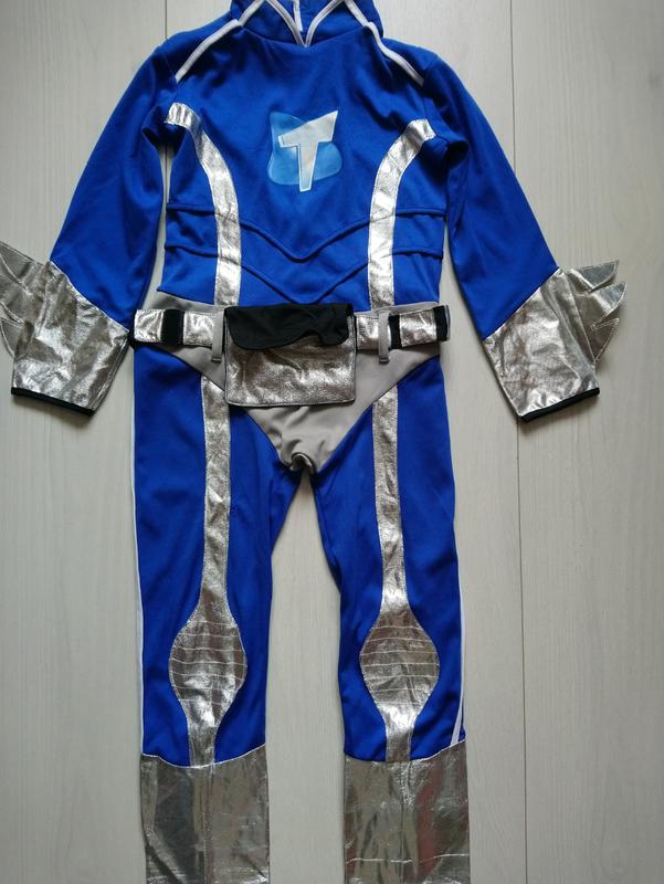 Карнавальний костюм в дуже хорошому стані З дефектів катишки Матеріал поліестр На вік 6-8 років Довжина від плеча до низу 101 см Від плеча до пахвини 50 см, Внутрішній шов штанки 54 см, В плечах 32 см Під руками 35 Рукав від плеча 41