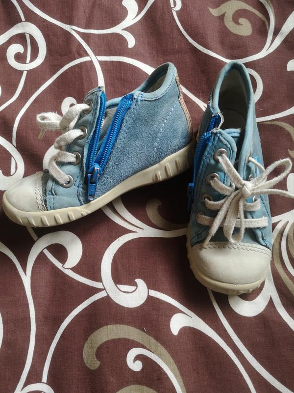 Кеди ecco з натуральної шкіри блакитного з білим кольору, виглядають дуже стильно та підійдуть як хлопчику так і дівчінці. Мають ортопедичну устілку з антишоком, є шнурівка для регулювання повноти, мають молнію що робить взування швидкім. Довжина устілки 15.5 см, ширина 6.3см. Чудове взуття для малечі на весну та осінь.