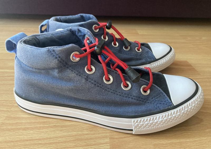Кеди Converse. Устілка 22 см. Розмір вказано US2,5 UK2 EUR34. Зручні, не потрібно шнурувати, є шнурок-резинка з кулісою.