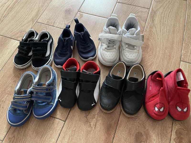 Розміри в см на фото Сині кеди - шкіряні. Розмір 25, устілка на фото. Стан 4.5/5. ціна 400грн Чорні кеди Puma шкіряні, стан 4/5 ціна 400грн Чорні туфлі, шкіра розмір 23. Стан 3/5 Ціна 270грн Тапочки Marvell 200грн, Кеди Vans, оригінал розмір 22.5, стан3/5 ціна 250грн Кросівки Nike 200грн, стан 4/5, розмір 22 Білі кеди, розмір 24, шкіряні стан 4/5. Ціна 350грн