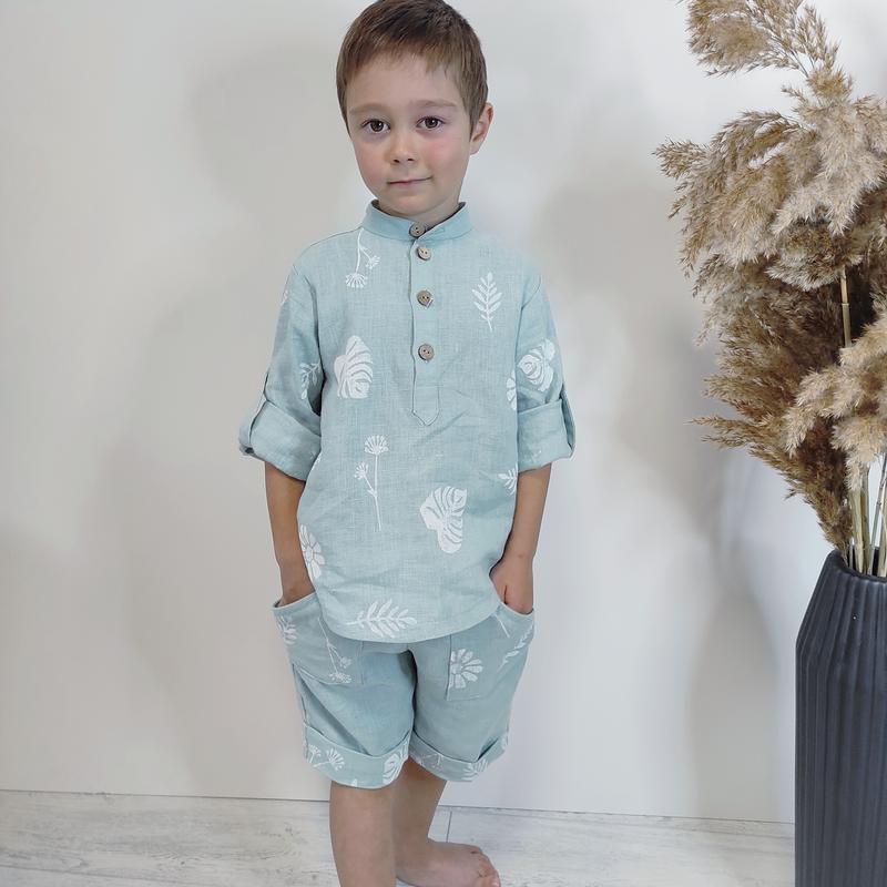 Лляний костюм дитячий. рубашка і шортики. принт нароситься вручну.