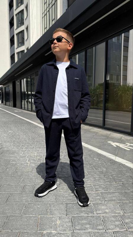 Інст babystore__clothing Костюм вафелька З натуральної тканини 90% бавовни 10% поліестер , стане ідеальним варіантом для Вашого сина. Два кольори: чорний та синій Зручний, приємний до тіла та дуже комфортний. Пояс на резинці та має додатково шнурочки. Розміри : 122, 128, 134 ,140, 146, 152 Заміри : Штани Пояс 122-50см 128-52см 134-54см 140-56см 146-58см 152-60см Обхват стегон 122-75см 128-78см 134-81см 140-84см 146-87см 152-90см Довжина виробу 122-74см 128-77см 134-80см 140-83см 146-86см 152-89см Сорочка Довжина по спинці 122-49см 128-52см 134-55см 140-58см 146-61см 152-64см Довжина рукава від плеча/довжина плеча 122-46/10см 128-47/11см 134-48/12см 140-49/12см 146-50/13см 152-52/13см Обхват грудей 122-80см 128-83см 134-86см 140-89см 146-92см 152-95см