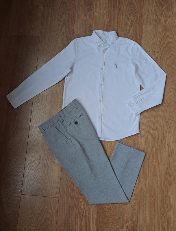 Костюм набор/белая рубашка с длинным рукавом для мальчика/серые брюки штаны для мальчика
