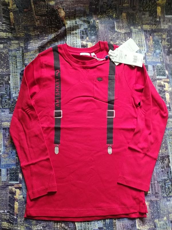 Оригінальний реглан на хлопчика, спереду має кишеньку та принт, колір темно червоний, не такий яскравий як на фото, з боків розрізи. Вказаний розмір 8/9 зріст 134. Склад 100 бавовна. Заміри довжина 54, ширина 36, рукав 49